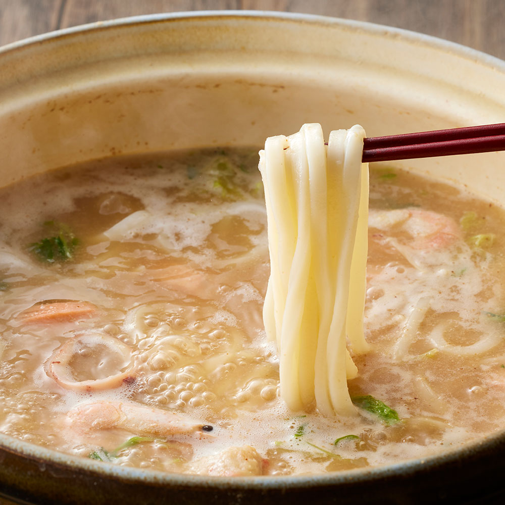 ■規格:石狩鍋セット(秋鮭切身40g×6切、ボイル海老×12尾、ボイル帆立×6個、かに入つみれ×3個、えび入つみれ×3個、とりごぼうつみれ×3個、ツボ抜きいか100g×1尾、冷凍うどん250g×1玉、たれ(濃縮:味噌仕立て)50g×2袋 ※3~4人前)