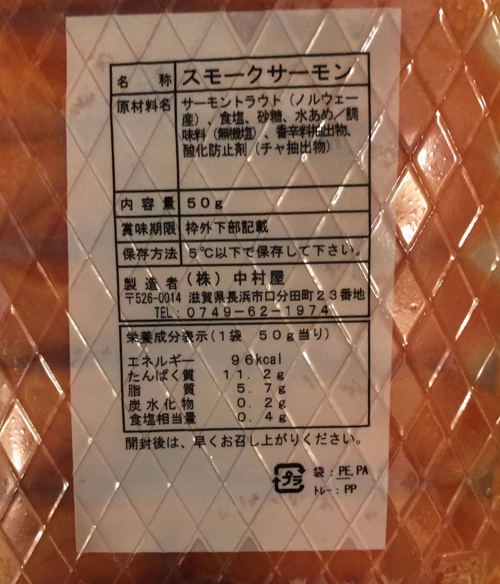 サーモントラウト(ノルウェー産)、食塩、砂糖、水あめ//調味料(無機塩)、香辛料出物、 酸化防止剤(チャ抽出物)