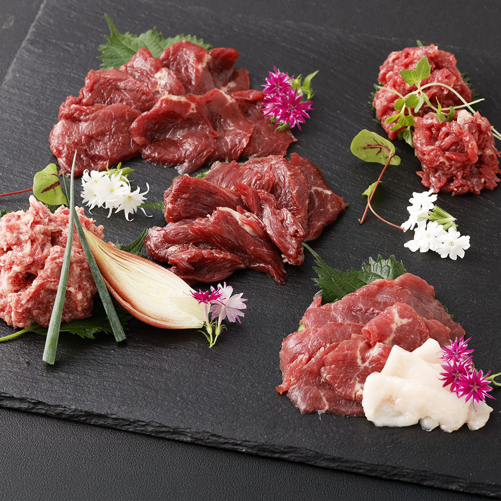 馬刺し専門店の味をご家庭にお届けいたします。スライス済みで個包装、解凍するするだけで馬刺しの本場熊本の味をお楽しみいただけます。