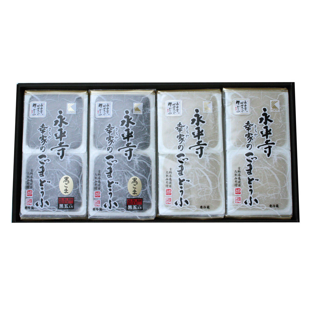 ■規格:白ごまどうふ(ごまどうふ115g×2個、たれみそ15g×2個)×2パック、黒ごまどうふ(ごまどうふ115g×2個、たれみそ15g×2個)×2パック