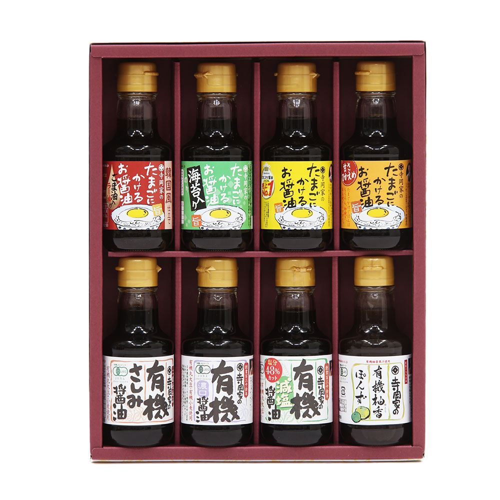 ■規格:韓国風仕立て寺岡家のたまごにかけるお醤油、寺岡家のたまごにかけるお醤油海苔入り、寺岡家のたまごにかけるお醤油、寺岡家のたまごにかけるお醤油甘さ控えめ、寺岡家の有機さしみ醤油、寺岡家の有機醤油濃口、寺岡家の有機減塩醤油、寺岡家の有機柚香ぽんず 各150ml×各1