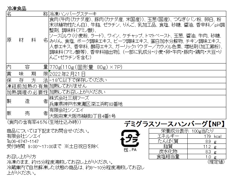 ■規格:デミグラスハンバーグ110g(固形量80g)×7