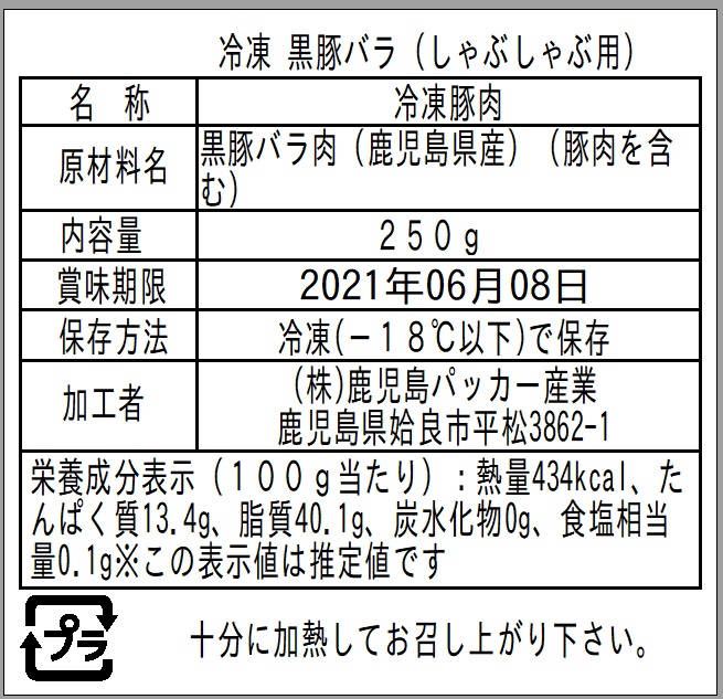 ■規格:黒豚バラしゃぶしゃぶ用250g×1