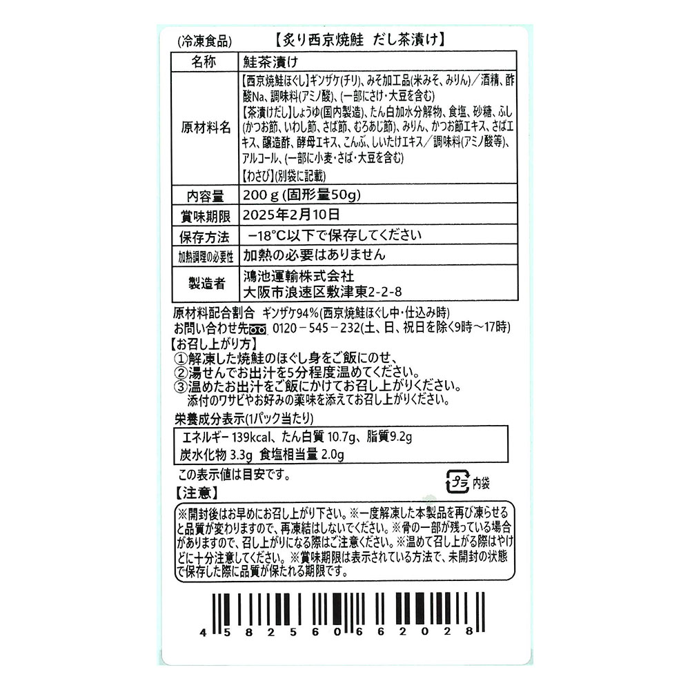 京都「西京味噌㈱」様の西京白みそに三日間じっくりと漬け込んでコクとうま味を引き出しました。ふっくら香ばしく炙り焼きにして香り豊かに仕上げています。上品な白だしと共にお召し上がりください。暑い夏場は解凍してそのまま、冷だし茶漬けにしても美味しくお召し上がれます。