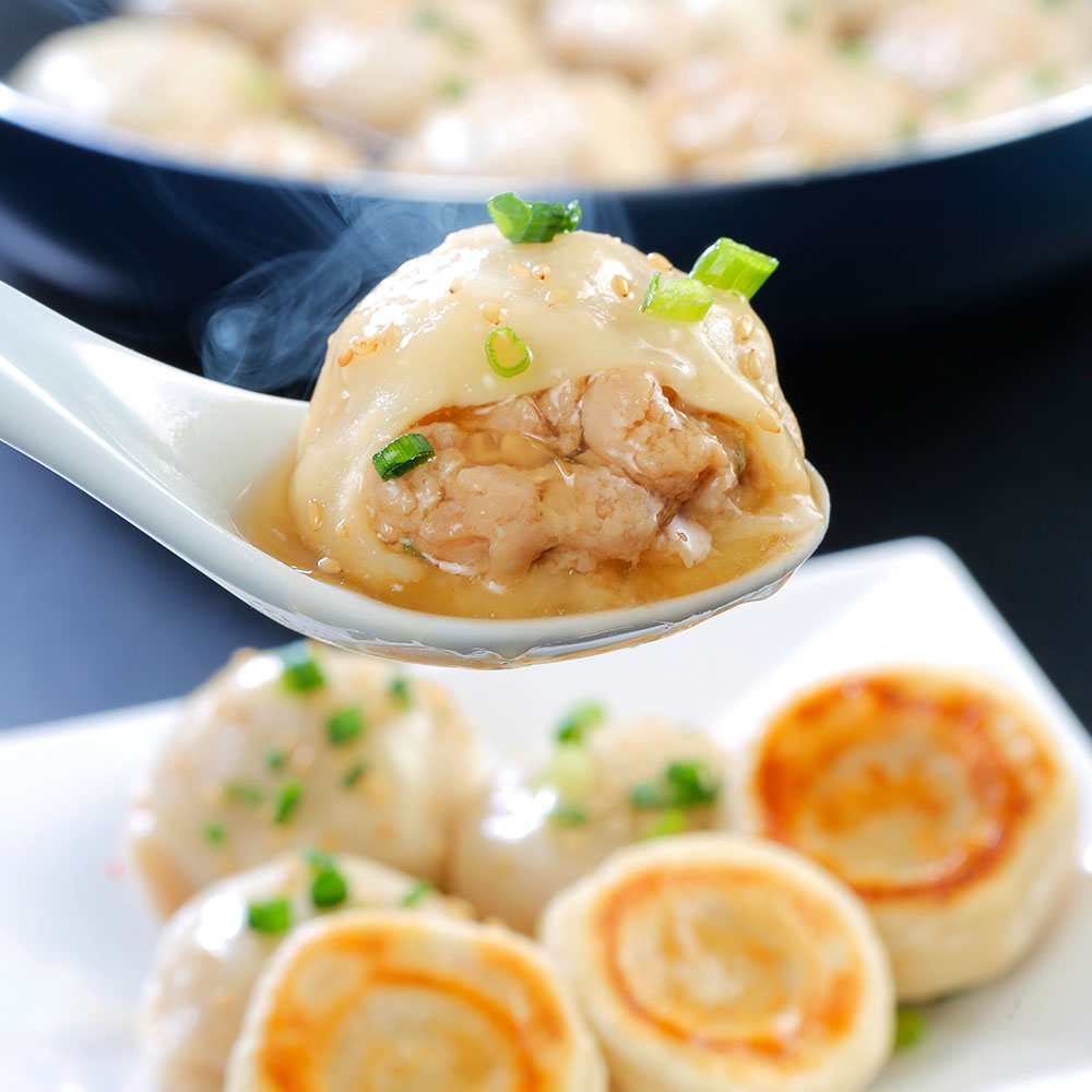 オリジナルコラーゲンスープたっぷり、チャイデリカの焼小籠包詰合せです。豚肉タイプは長崎県産の希少なブランド豚「雲仙うまか豚紅葉」を100%使用した甘めの九州醤油風味。エビタイプは、お肉を一切使用せず2種類の海老を使用し、ぷりぷりの食感であっさり塩味ながらエビの風味たっぷりのチャイデリカオリジナルです。鶏肉タイプは、軟骨と青紫蘇で食感と香りのアクセントを加えたちょっと和風なオリジナルです。カリッとモチッとした皮を破れば、じゅわ~と溢れるスープに具材の旨味がいっぱいです。袋のままレンジに入れて1~2分簡単調理で焼き立ての風味が味わえます。