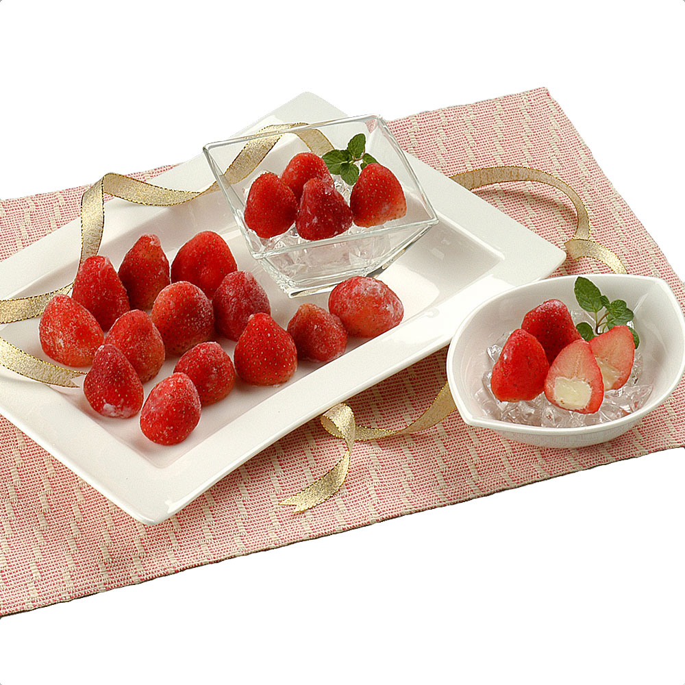 「食べる宝石」と言われる苺をそのままに。新鮮な苺の芯を丁寧にくり抜いて相性抜群の練乳と生クリームを使ったアイスを絞り入れました。