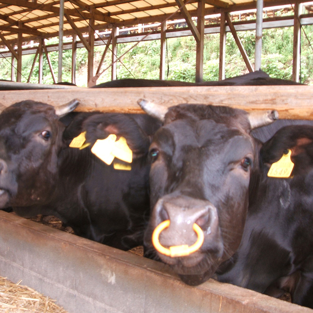 琵琶湖の東の山裾で、血統や飼料、飼育年数にこだわり愛情たっぷりに育てた近江牛です。