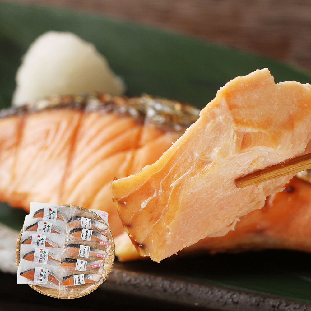 北海道日高沖で水揚げされた新鮮な秋鮭と、船上にて活〆処理された桜鱒を甘塩に仕立て使いやすい個包装の切身にいたしました。