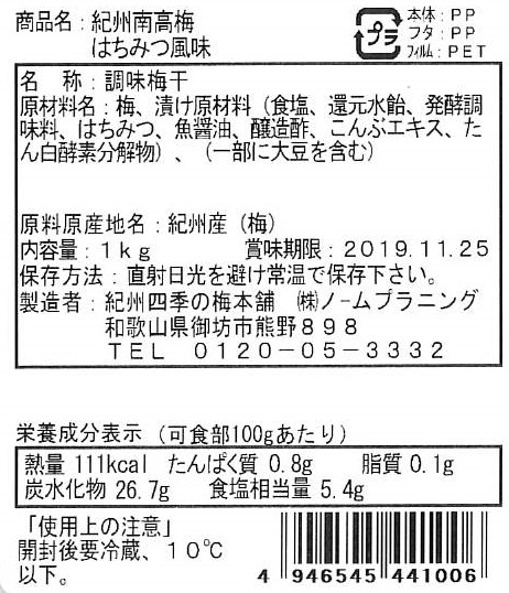 ■規格:はちみつ風味(塩分6%)1kg