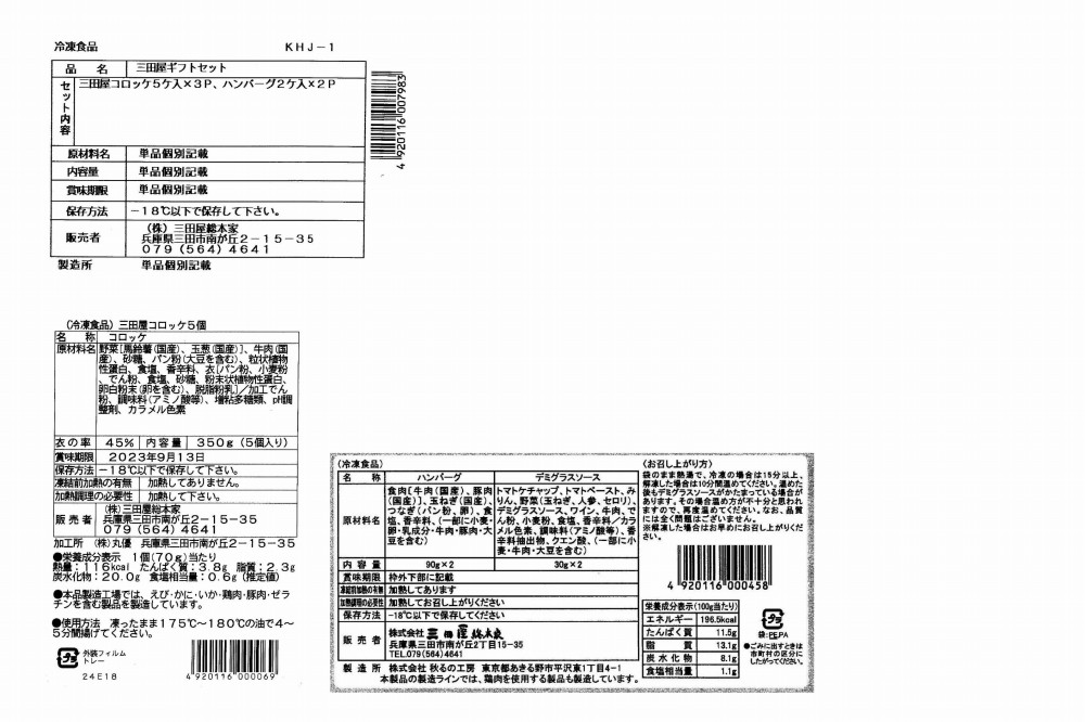■規格:三田屋コロッケ(70g×5)×3、三田屋ハンバーグ(90g×2)・デミグラスソース(30g×2)×2