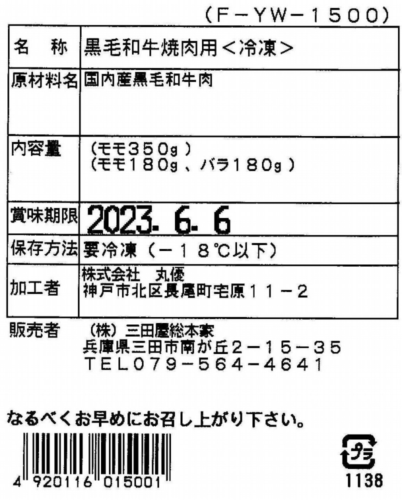 三田屋総本家 黒毛和牛焼肉用 モモ・バラ肉 兵庫県産 冷凍