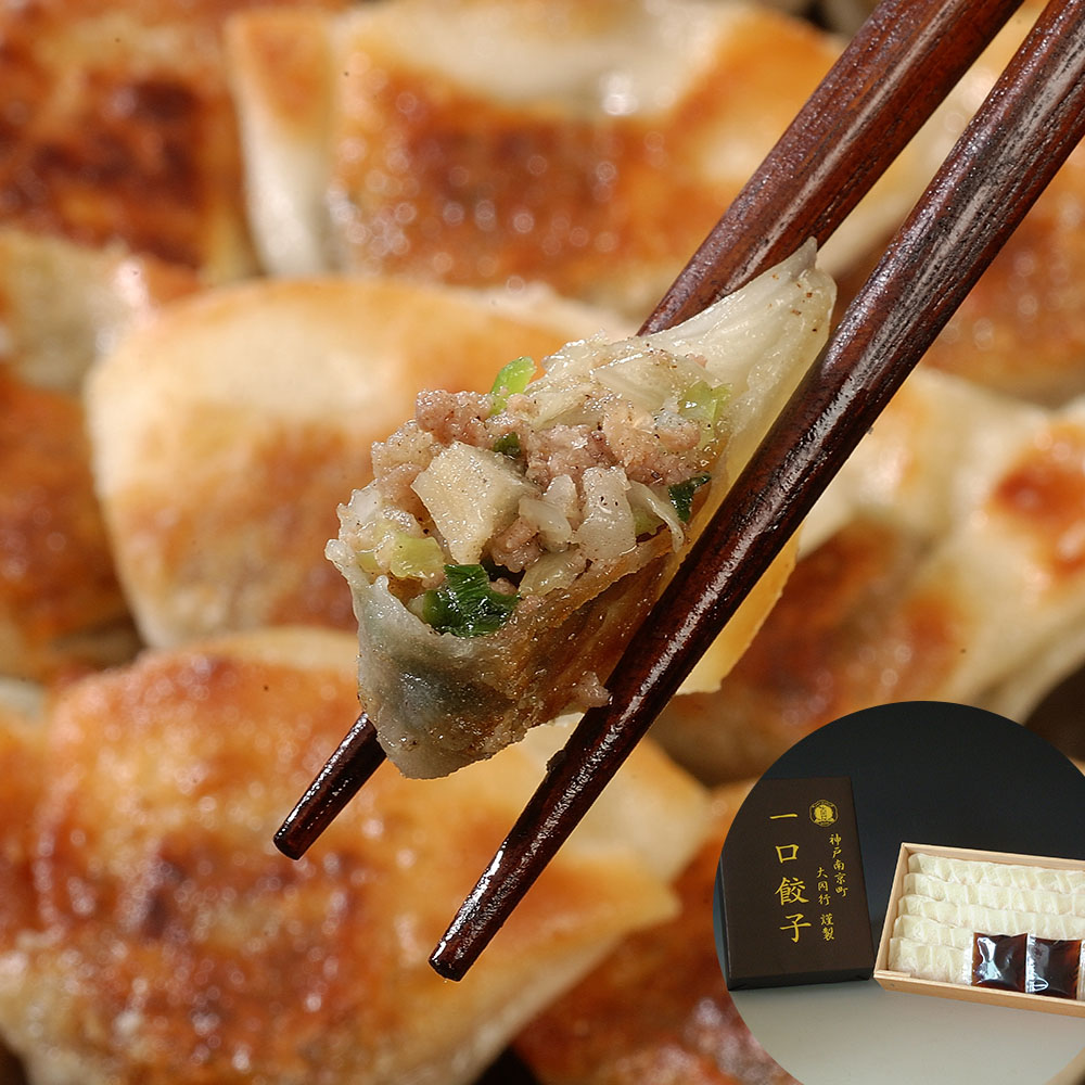 神戸南京町で行列の出来る飲茶のお店自慢の一口餃子。豚肉とキャベツに、にら・にんにく・生姜を加え薄皮で包んだ一口サイズの餃子です。