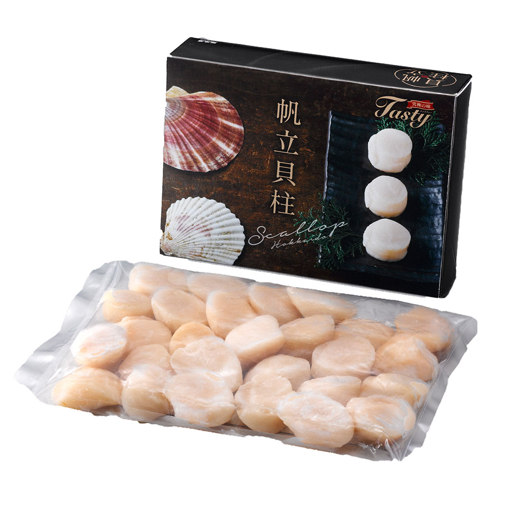 北海道産の新鮮なホタテ貝から貝柱だけを急速凍結致しました。旨みが凝縮されたプリプリの貝柱は刺身はもちろん、カルパッチョ・バター焼き・天ぷら・フライなど、いろいろな料理でもお楽しみいただけます。