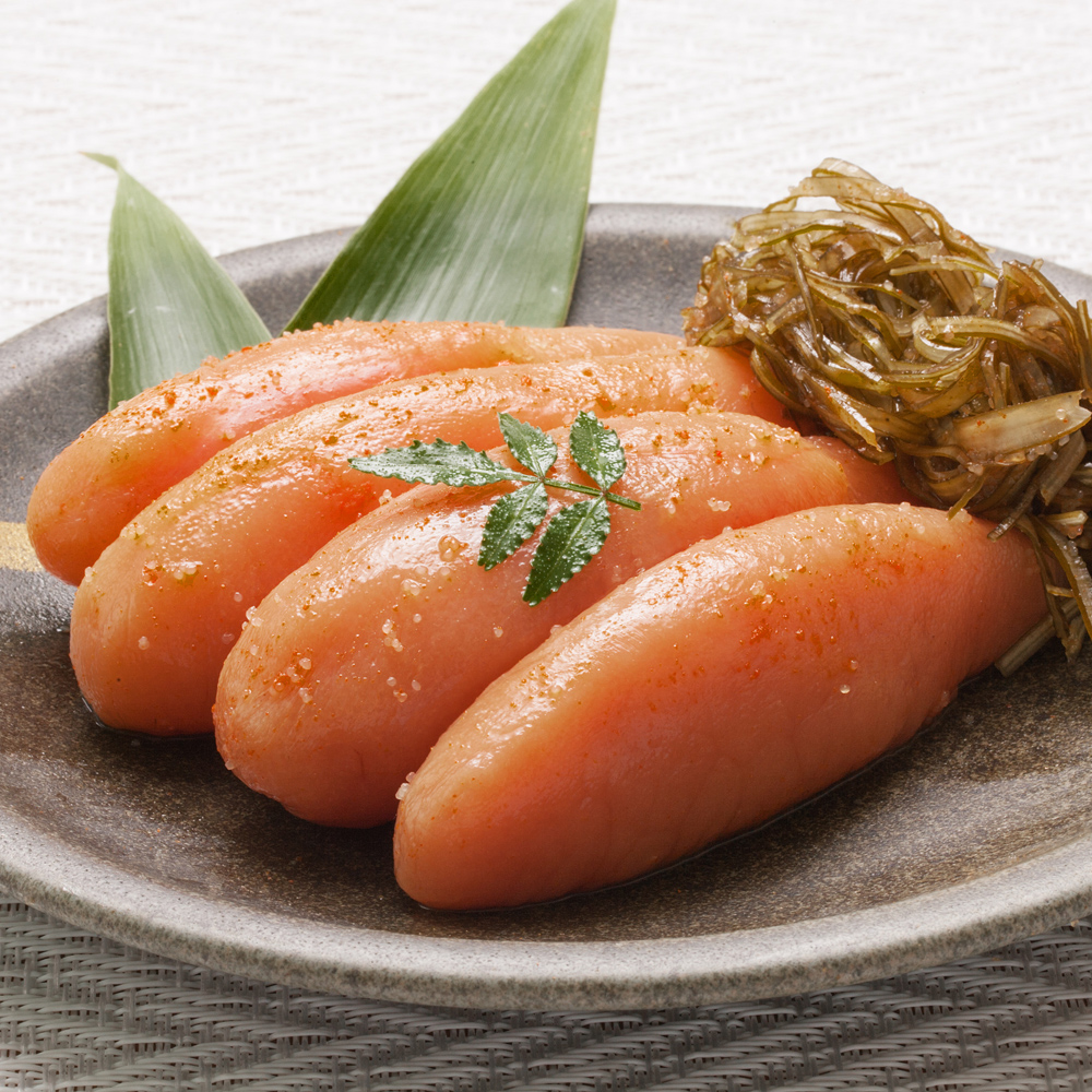昆布に携わること三十余年の社長が、創意工夫を凝らし誕生させた昆布が主役の辛子明太子、『味の筑前 昆布漬辛子明太子(無着色)』。幾重にも選別したたらこを、北海道産昆布の旨味を存分に引き出した調味液にじっくり漬け込み熟成させることによって、辛子明太子にまろやかな味わいが生まれます。また、明太子に添えられる昆布にも、ピリッと引き締まった辛味が加わり互いの素材を存分に引き出しあった辛子明太子に仕上がっています。辛いだけではない、一味違った風味を本場博多よりお届けします。