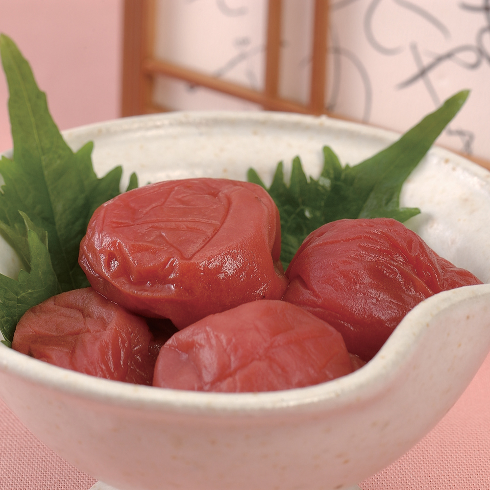 薄皮肉厚の紀州南高梅。国産しそを使用して食べやすく仕上げました。製造過程で出来てしまう「つぶれ梅」ですが、キズを取り除いたものや、少しだけつぶれてしまったものだけを選んでパックしました。