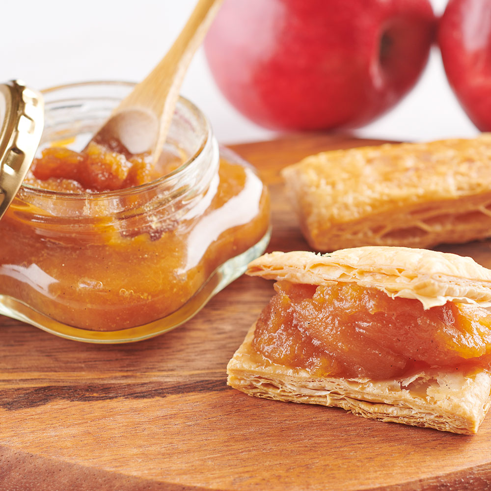 ●りんごタタン:りんご(国産)、砂糖、バター(乳成分を含む)、バニラ