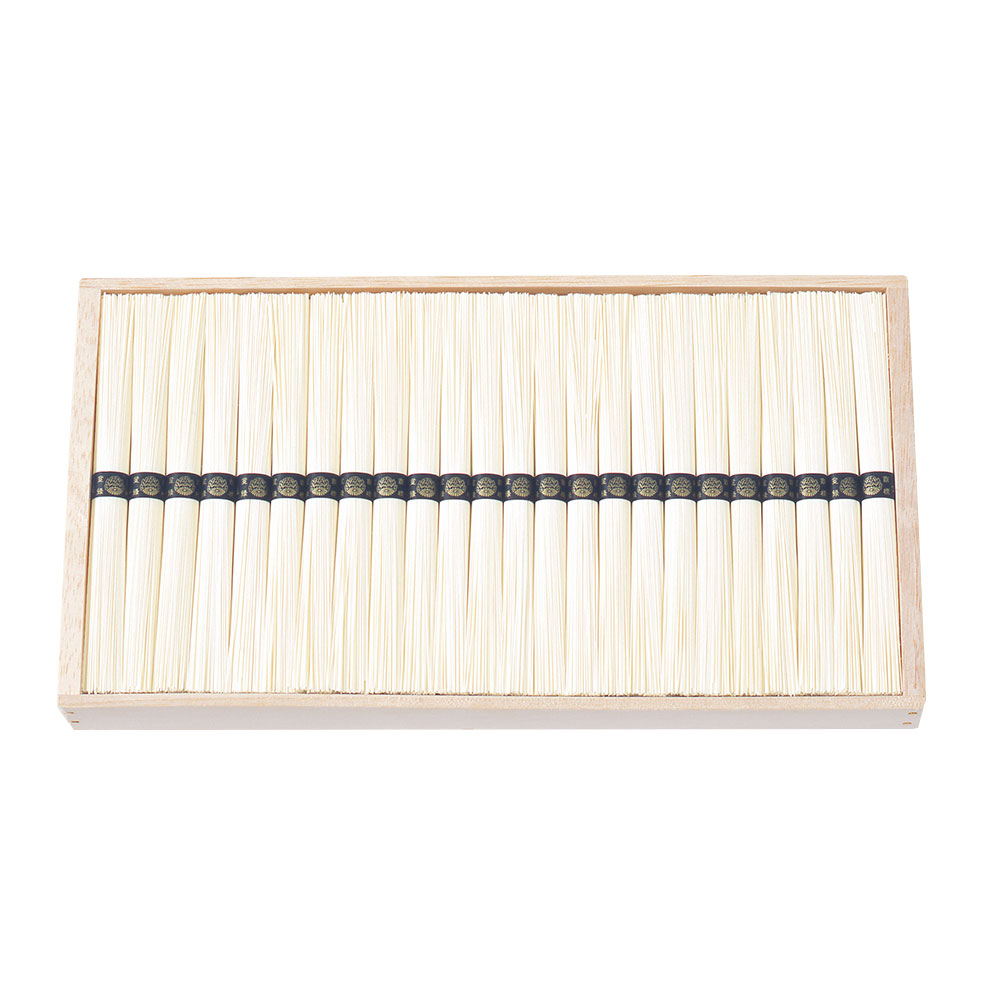 国産小麦に本葛を加え、丁寧に手延べ致しました。葛入りならではのツルツルとした喉越しと、手延べによるコシの強さが自慢です。