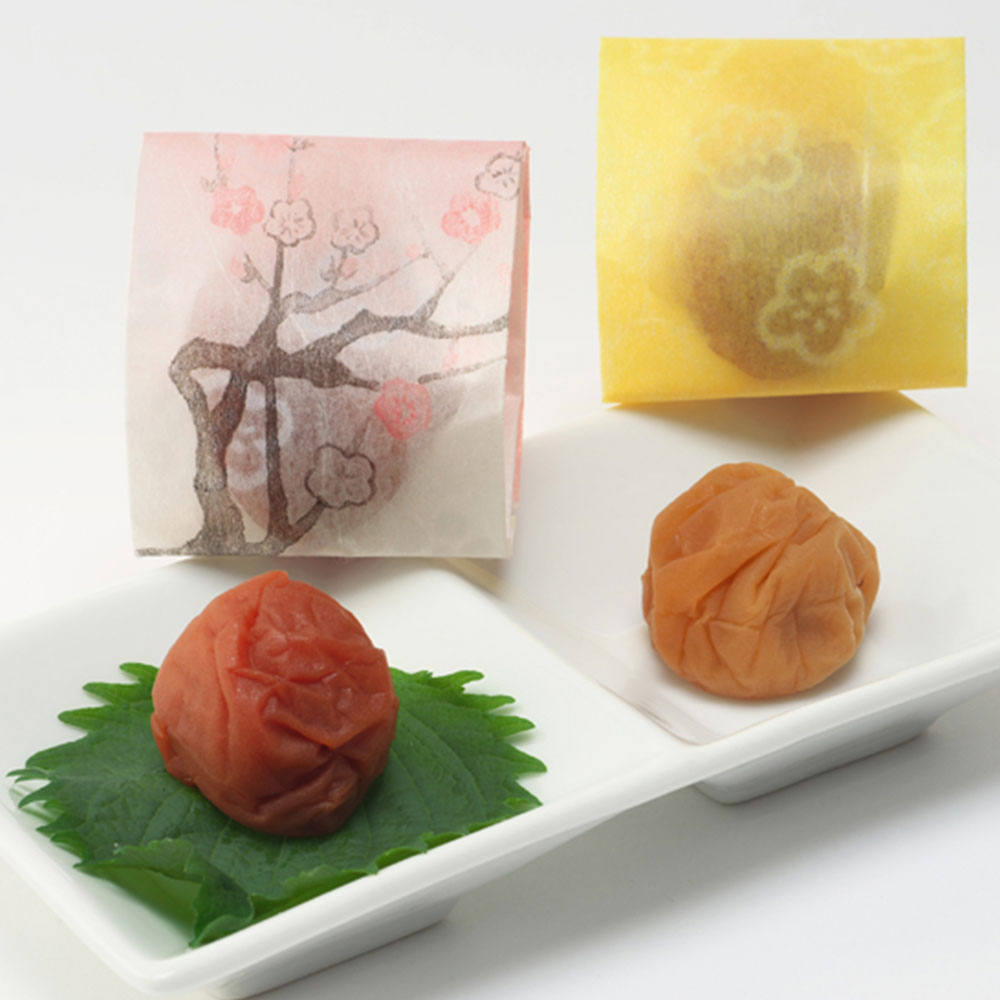 紀州みなべの「南高梅」を一粒一粒丁寧に袋で包装しました。塩だけで漬け込んだ白干し梅干と、紫蘇の香味をいたしたすっきりとした味わいのしそ漬梅干の詰め合わせです。