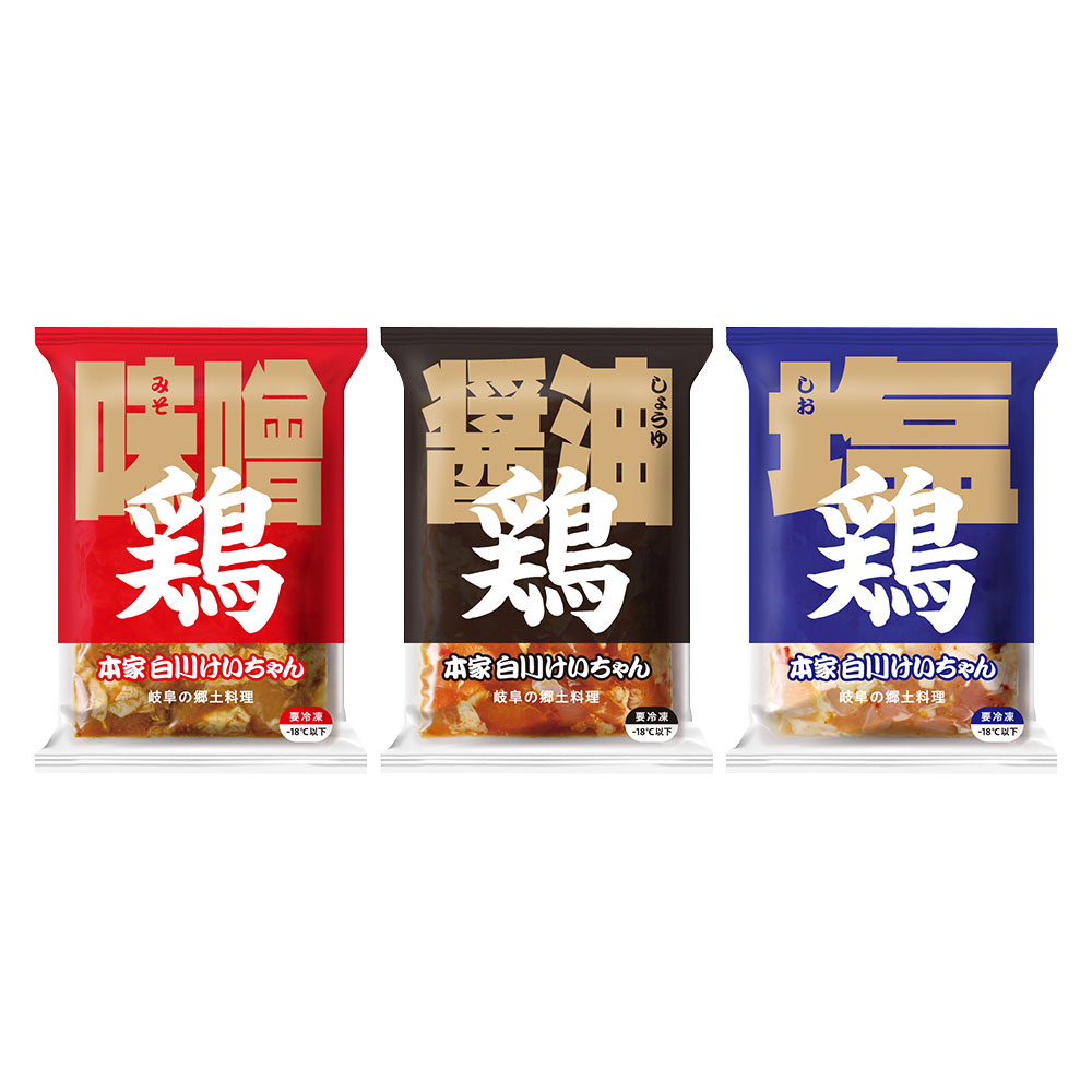 岐阜 本家白川けいちゃん3種セット 味噌・醤油・塩味 鶏肉料理