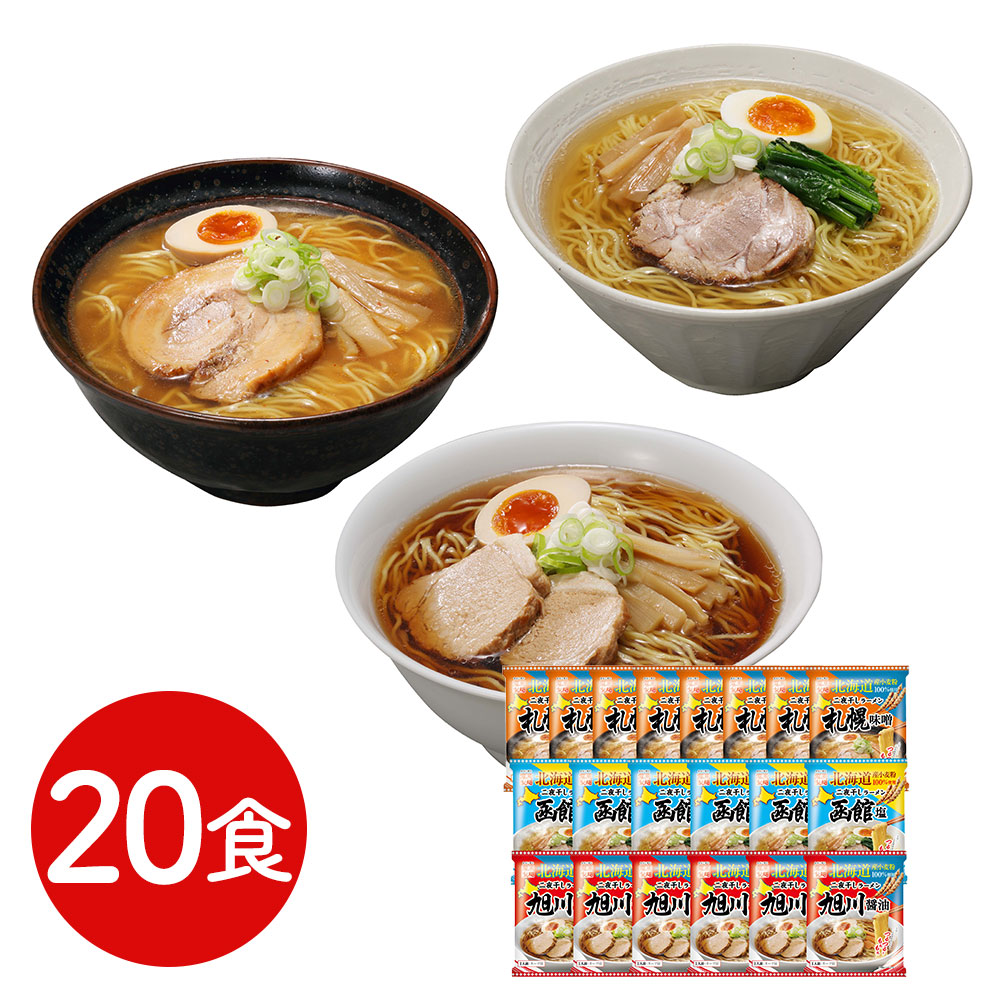 北海道三大産地ラーメンセット 20食 送料無料 生麺風 二夜干し