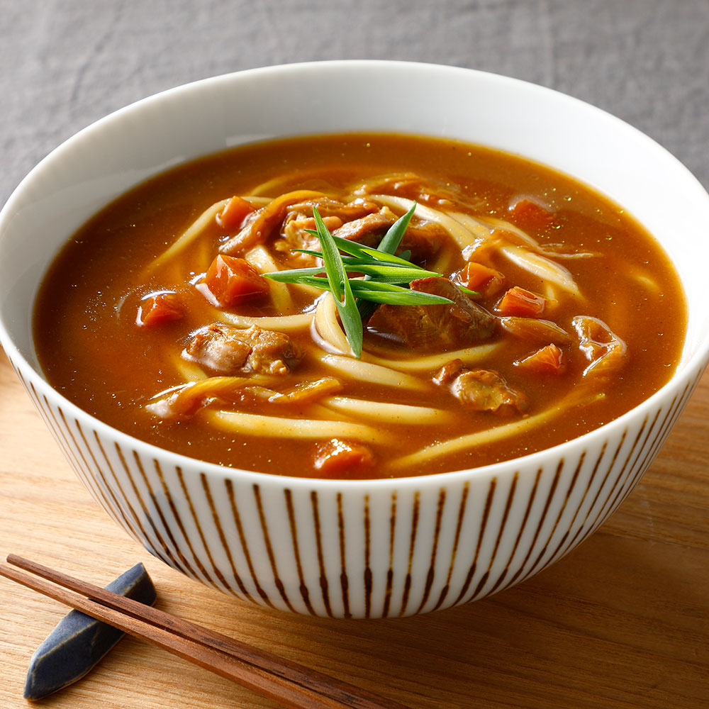 よこすか海軍カレーに待望のカレー南蛮が登場!!肉は鶏肉を選んであっさりと、かつおのだし汁はしっかりきかせて風味豊かに仕上げました。うどんでも蕎麦でも、温めても冷やしても美味しい!