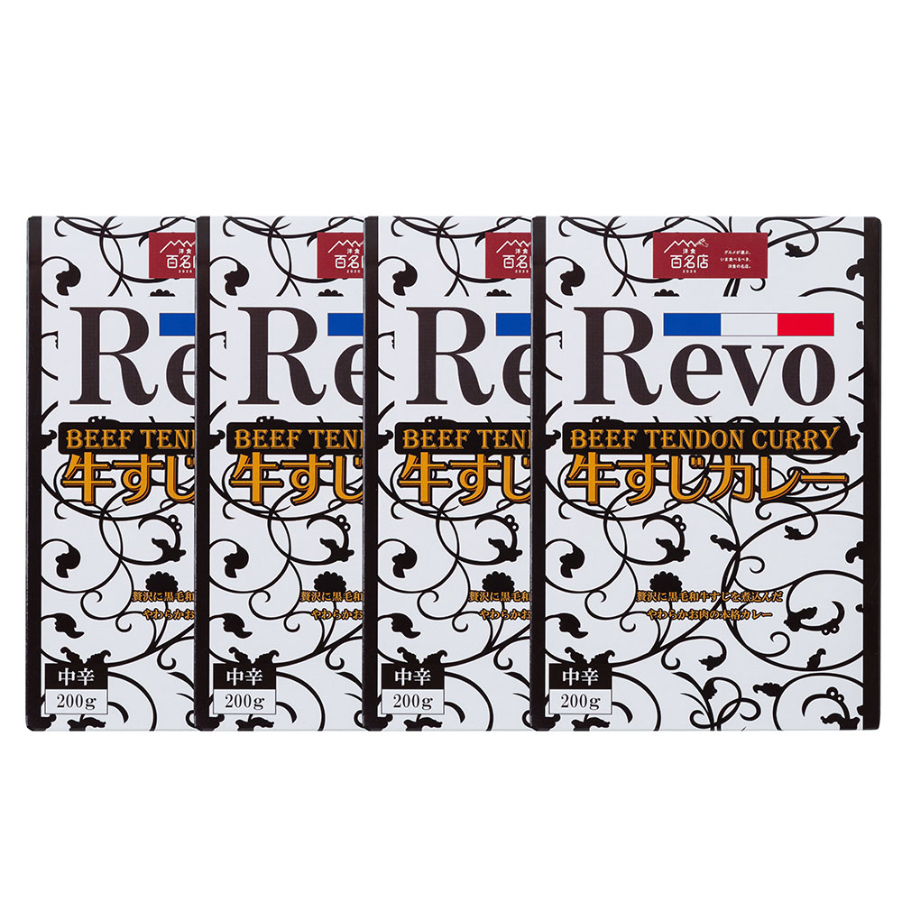 2020年食べログ洋食『百銘店』に選ばれた黒毛和牛一頭買いで有名な人気洋食店「REVO」の上質の黒毛和牛すじのみをじっくり煮込んだカレーです。絶妙なスパイシーさと黒毛和牛すじから出るコクがたまりません。お店の味を追求し、試作を繰り返し完成させました。本格洋食店のカレーの味をご家庭でお召し上がりいただけます。