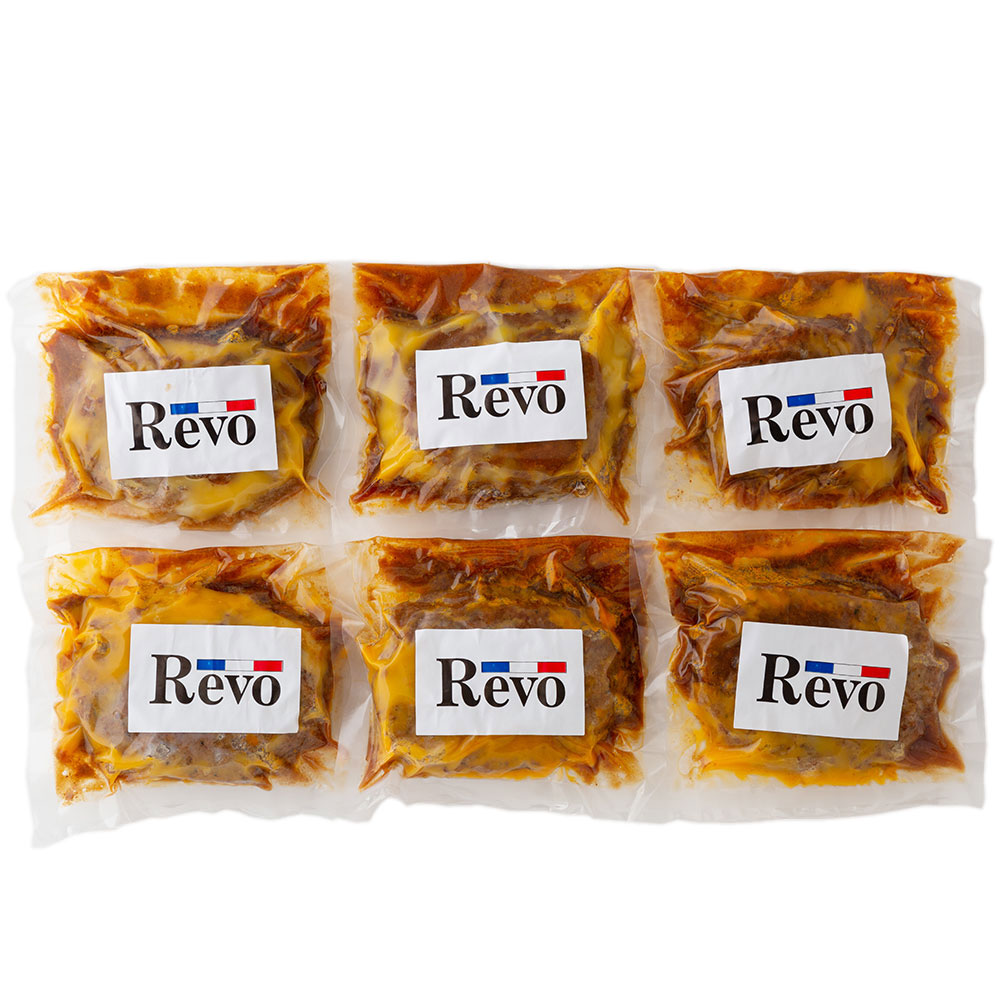 2020年食べログ洋食『百銘店』に選ばれた、黒毛和牛一頭買いで有名な洋食屋「Revo」のお店メニューの中でも来店のお客様を唸らせる、上質の黒毛和牛とこだわりの素材で作り上げたハンバーグです。使用する牛肉はオーナーの目利きによる厳選のA4、A5黒毛和牛のみを使用しています。