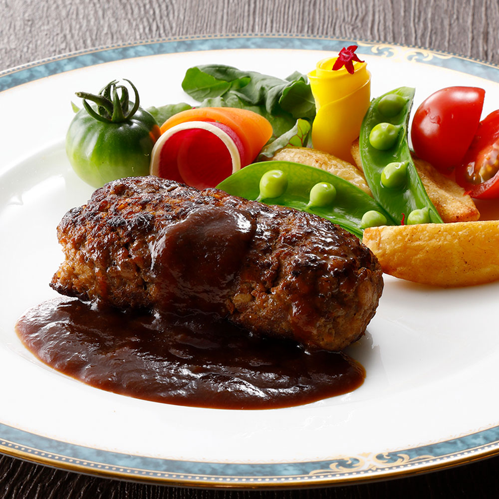 日本を代表するラグジュアリーホテルとして、長年国内外の人々に愛され続けるホテルオークラ。世界のグルメたちを魅了させる神戸牛の旨みを存分に味わえるジューシーなハンバーグ。相性がよいデミグラスソースで味わえる一品。