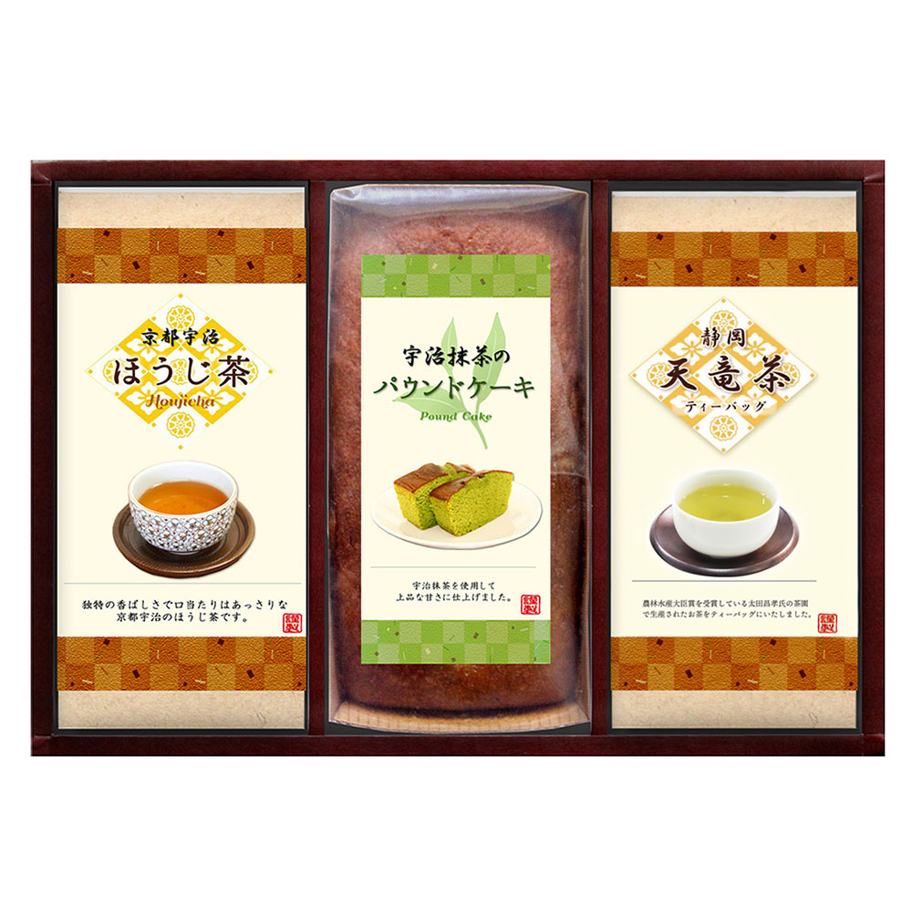 ■規格:宇治抹茶のパウンドケーキ1本、宇治ほうじ茶30g、煎茶ティーバッグ2g×10