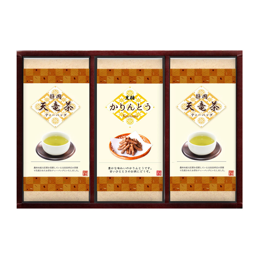 黒糖かりんとう、煎茶ティーバッグの詰め合わせです。