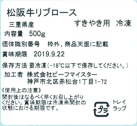 ■規格:松阪牛すきやき用リブロース500g