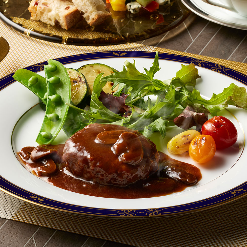横浜みなとみらい21地区の”横浜ランドマークタワー”内「横浜ロイヤルパークホテル」監修の一品。コク・うま味・程よい酸味が調和されたデミグラスソースはハンバーグとの相性抜群です。