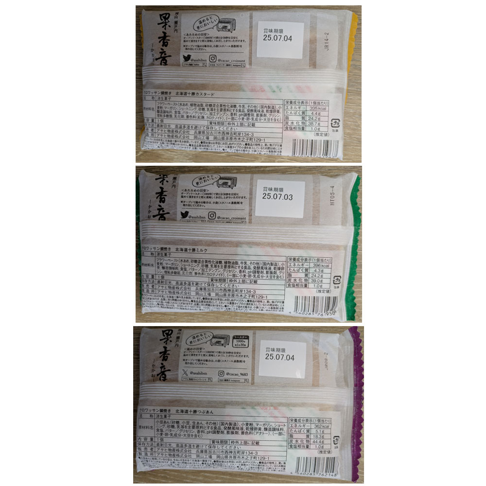 北海道十勝産の小豆を使用した滑らかな舌触りのつぶあんと、十勝産の牛乳で作ったリッチな味わいのミルク・カスタードの3種類をセットにしました。手作業で27層に折り込まれた生地は贅沢なほどにバターの香り高く、それでいて甘さ控えめ。トースターで温めるとサクサクと違った触感が楽しめます。